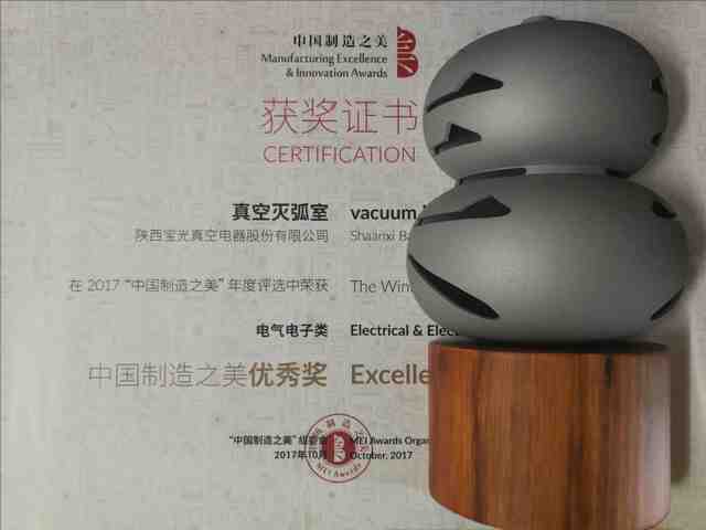 近日,從“中國制造之美”組委會獲悉,寶光股份制造的真空滅弧室榮獲“中國制造之美”電氣電子類產(chǎn)品優(yōu)秀獎。