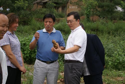 座談會后,麟游縣、招賢鎮(zhèn)及高莊村、大嶺村三級領(lǐng)導(dǎo),陪同付副書記及袁副總一行,實地考察了地膜玉米和地膜土豆扶助項目基地并在高莊村委會會議室進行了座談。當(dāng)領(lǐng)導(dǎo)一行看到項目基地的農(nóng)作物長勢良好、豐收在望,感到十分欣慰,并就基地的管理、發(fā)展及農(nóng)副產(chǎn)品的銷售等,向2個村的干部對提出了建議和希望。