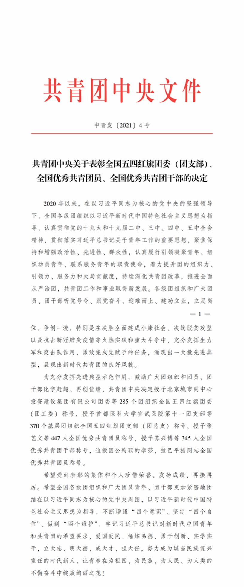 共青團(tuán)中央本次授予285個(gè)團(tuán)組織全國(guó)五四紅旗團(tuán)委稱號(hào),授予370個(gè)團(tuán)組織全國(guó)五四紅旗團(tuán)支部稱號(hào),授予447人全國(guó)優(yōu)秀共青團(tuán)員稱號(hào),授予345人全國(guó)優(yōu)秀共青團(tuán)干部稱號(hào),并追授因公殉職的李莎、拉巴平措同志為全國(guó)優(yōu)秀共青團(tuán)員稱號(hào)。