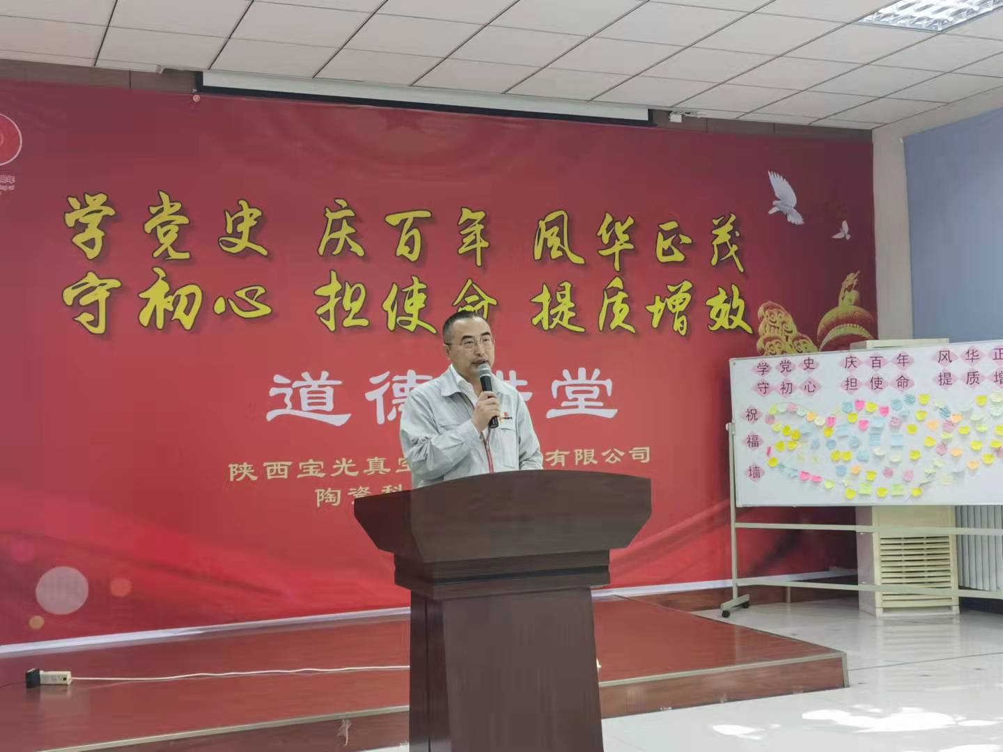 “唱支山歌給黨聽(tīng), 我把黨來(lái)比母親......”9月30日下午,在高昂激越、催人奮進(jìn)的歌聲中,由寶光股份黨委工作處主辦,陶瓷科技公司黨支部承辦的“學(xué)黨史、慶百年、風(fēng)華正茂; 守初心、擔(dān)使命、提質(zhì)增效”主題道德講堂盛大開啟。寶光股份黨委書記、總經(jīng)理謝洪濤,寶光股份工會(huì)主席、紀(jì)委書記付宗喜,寶光股份副總經(jīng)理袁軍為應(yīng)邀出席活動(dòng)。