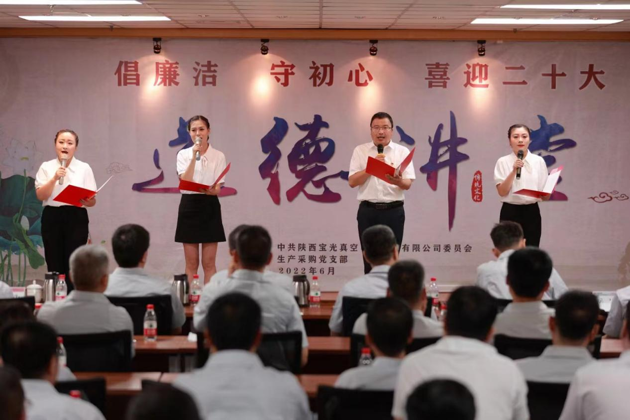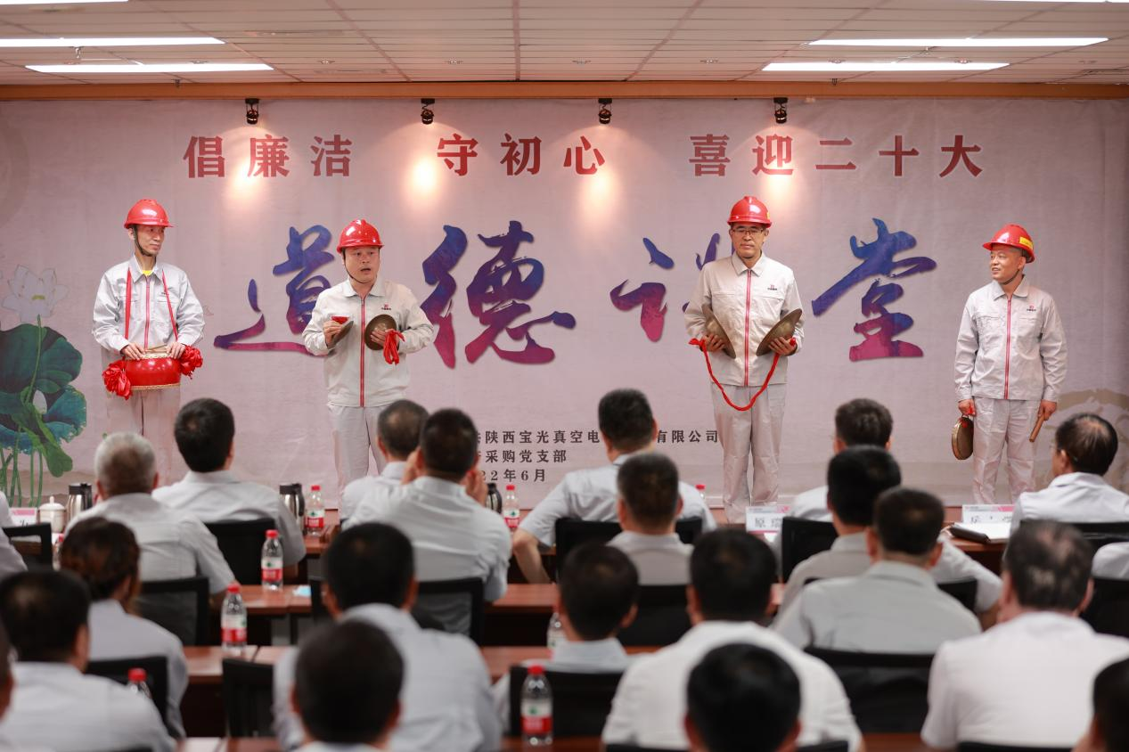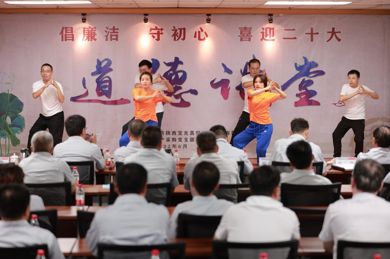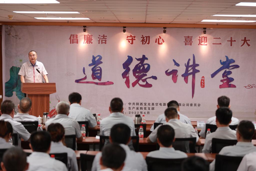 為將黨史學習教育不斷引向深入,全面提升廣大職工道德素養(yǎng),進一步促進企業(yè)精神文明建設,切實激發(fā)廣大干部職工砥礪奮進、爭開新局的信心和決心,以更加飽滿的工作熱情迎接建黨101周年和黨的二十大的勝利召開,6月28日下午,由寶光股份黨委主辦,生產(chǎn)采購黨支部承辦的“倡廉潔、守初心、喜迎二十大”主題道德講堂如期舉行。