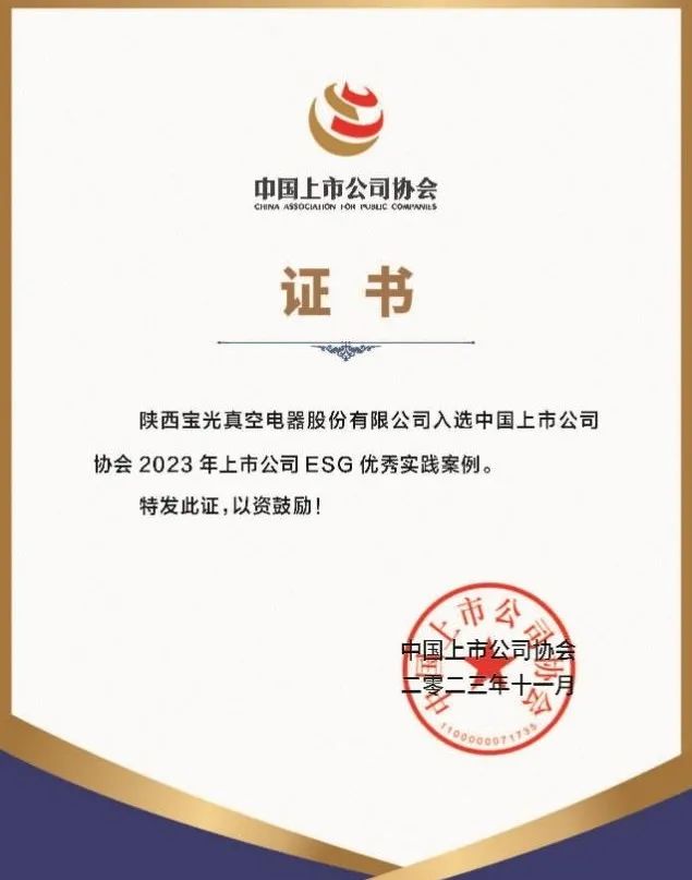 后續(xù),中國上市公司協(xié)會將匯編形成《中國上市公司ESG最佳實(shí)踐案例2023》在可持續(xù)發(fā)展大會上發(fā)布。獲評優(yōu)秀ESG實(shí)踐案例,充分展現(xiàn)了寶光股份在完善ESG治理體系、貫徹綠色發(fā)展理念、履行社會責(zé)任等方面的優(yōu)秀做法。