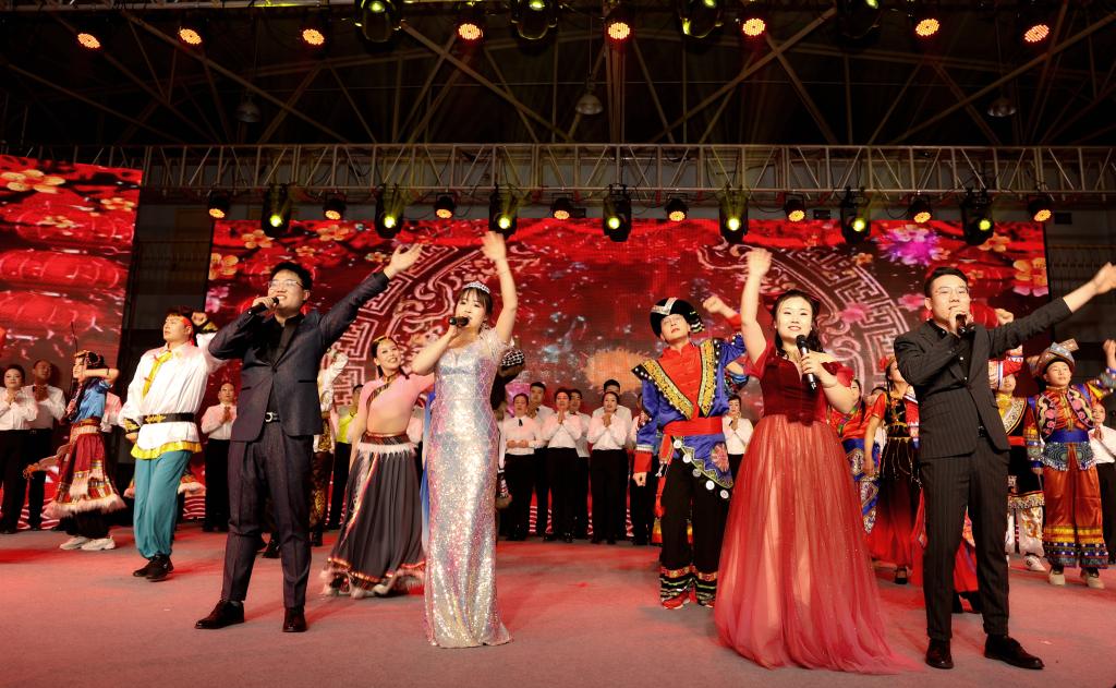 演出結(jié)束后,公司領(lǐng)導(dǎo)走上舞臺(tái),與演出人員合影留念,同慶龍年新春。