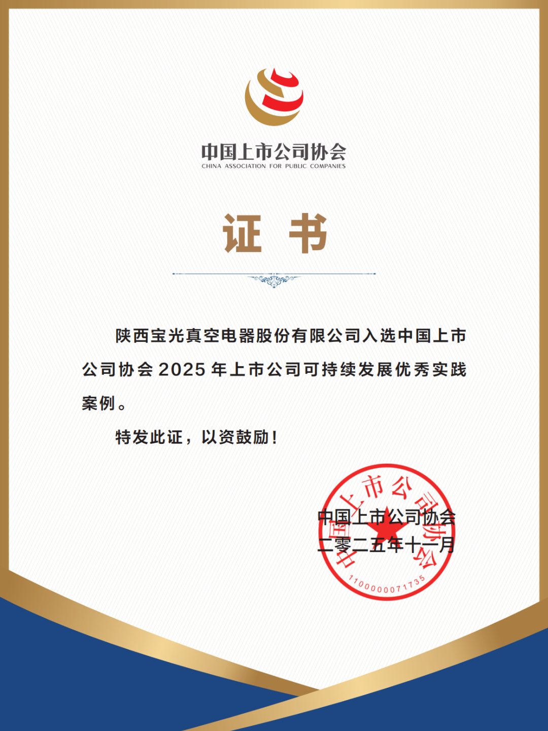 陜西寶光真空電器股份有限公司 榮獲“寶雞市五一勞動獎狀”榮譽稱號